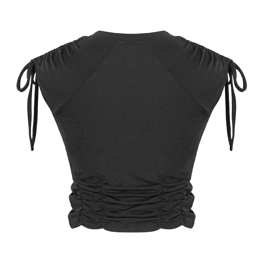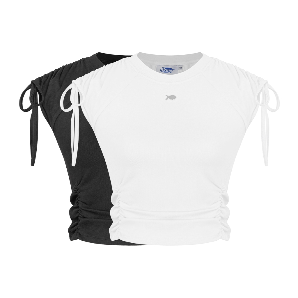 Khắc họa vẻ kiêu kỳ và ngọt ngào trong form dáng croptop được phá cách bởi điểm bo gân tinh tế. Một chút năng động của sắc trắng tinh khiết.