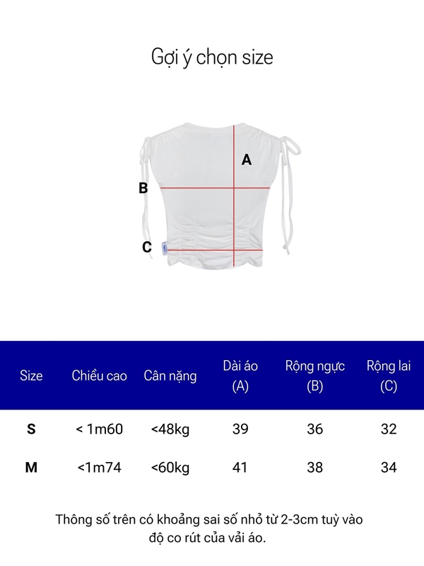 | Size | Dài áo | Rộng ngực | Rộng lai | Rộng vai |