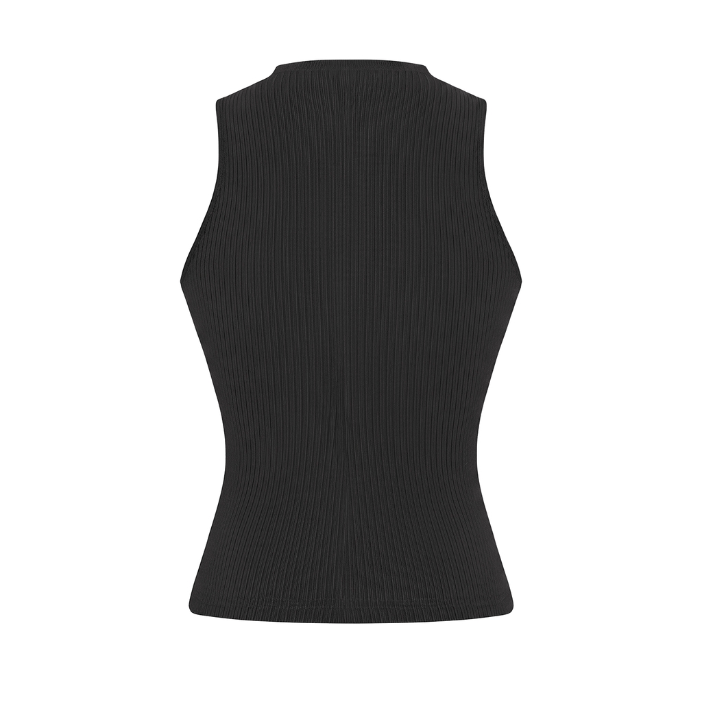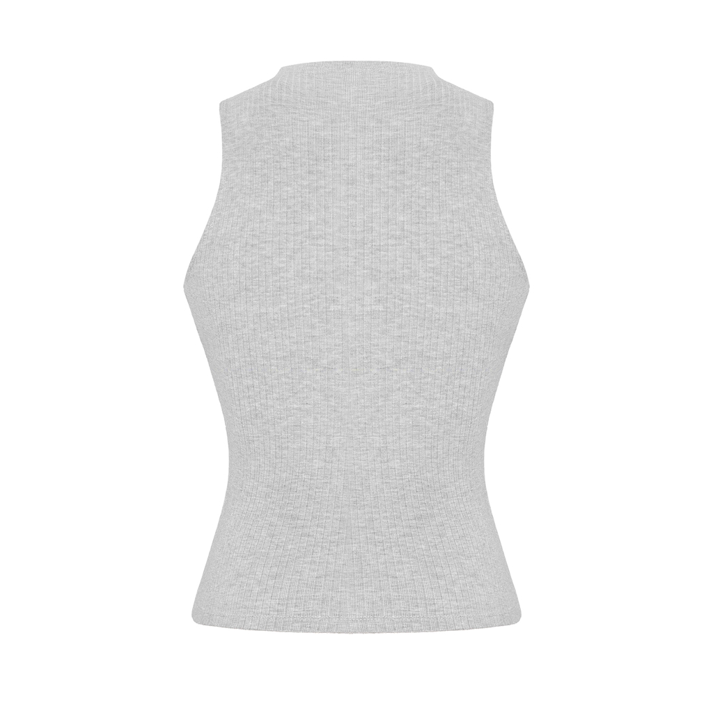 Chiếc áo ba lỗ dáng dài này nổi bật với thiết kế cổ cao tinh tế, ôm nhẹ lấy phần cổ, tạo phong thái kiêu kỳ và nhã nhặn.