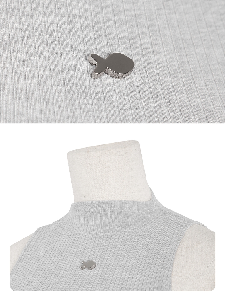 Điểm nhấn đáng yêu và nữ tính nằm ở chiếc logo cá inox nhỏ nhắn, được đính tinh tế, tạo một chút lấp lánh ngọt ngào cho tổng thể chiếc áo.