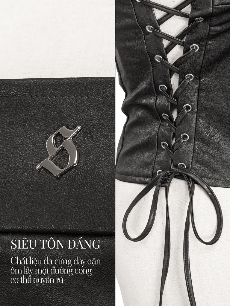 Chất liệu da cứng dày dặn, giữ form ôm chuẩn từng đường nét cơ thể.