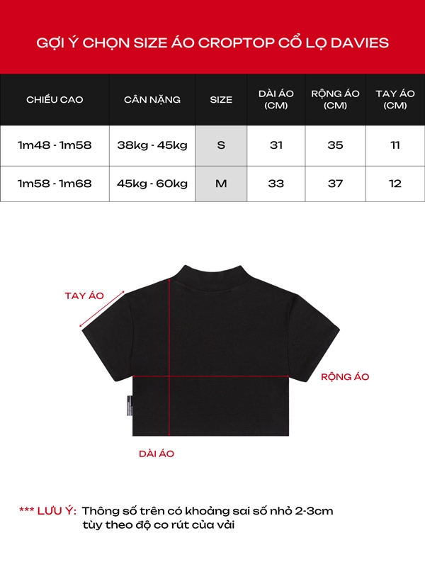 Davies giới thiệu mẫu áo croptop cổ lọ tay ngắn với 2 size S và M, giúp bạn dễ dàng lựa chọn chiếc áo vừa vặn, tôn lên đường nét và phù hợp với phong cách riêng của mình.