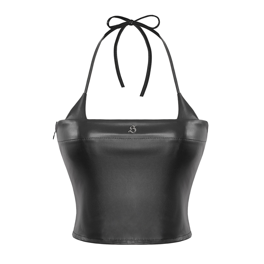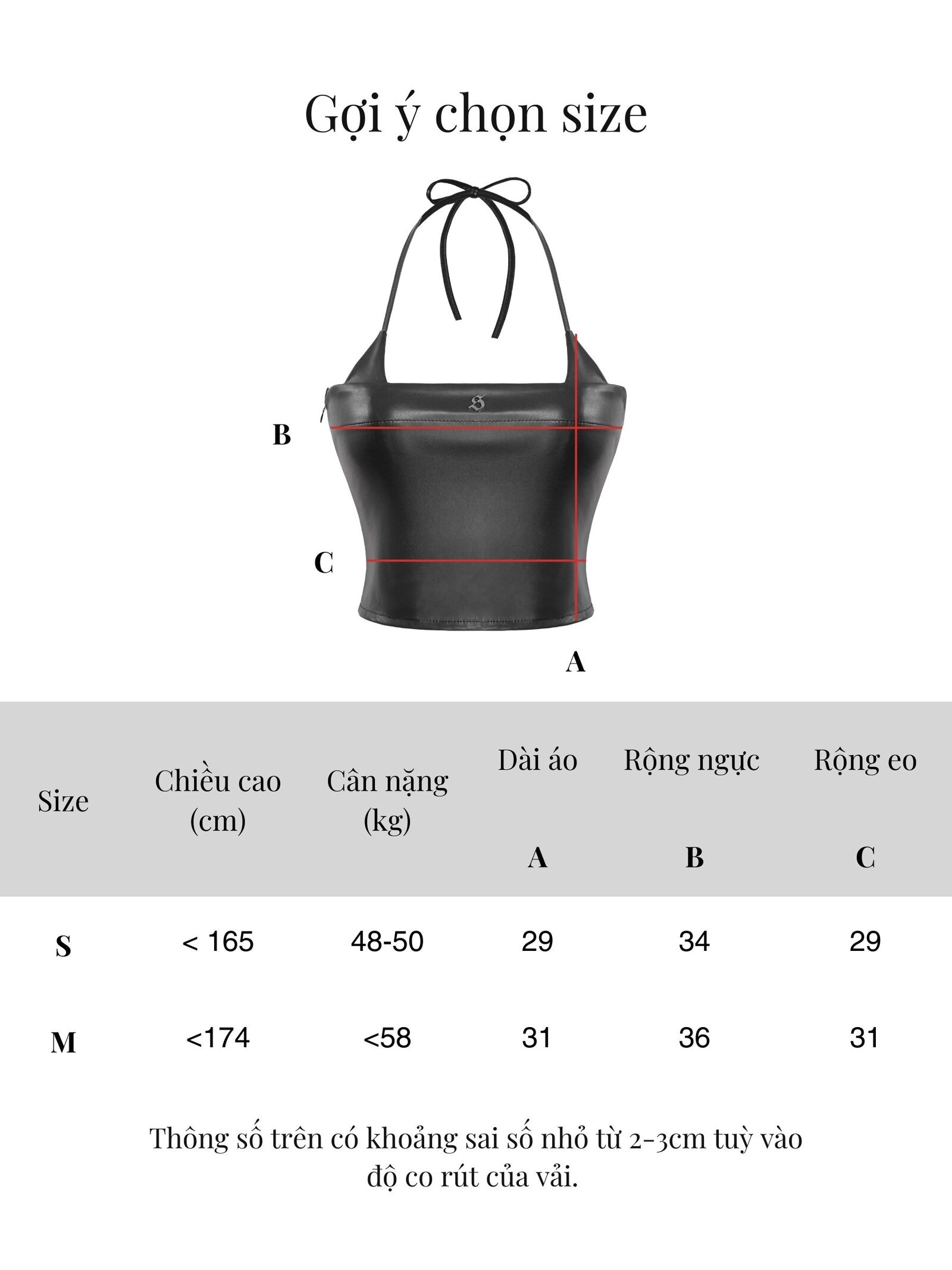 Áo tube có dáng cổ yếm cột dây tinh tế, tạo điểm nhấn thanh thoát cho phần cổ và vai, cùng logo inox sáng bóng sang trọng, nâng tầm tổng thể thiết kế.