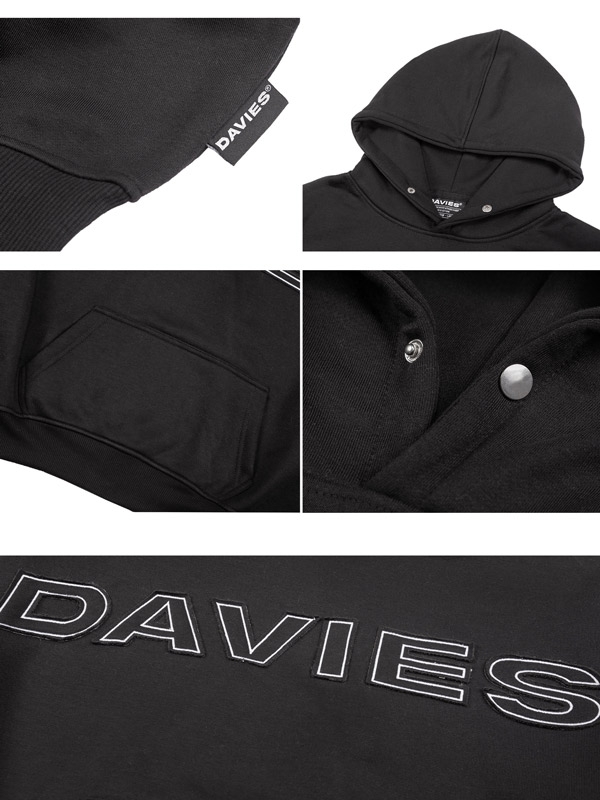 Áo hoodie form rộng Davies được trang bị phụ liệu nút bấm chắc chắn, giúp người mặc dễ dàng điều chỉnh và tạo sự thoải mái tối đa. Các chi tiết bo chun ở tay áo và gấu áo tạo nên phong cách gọn gàng, vừa vặn.