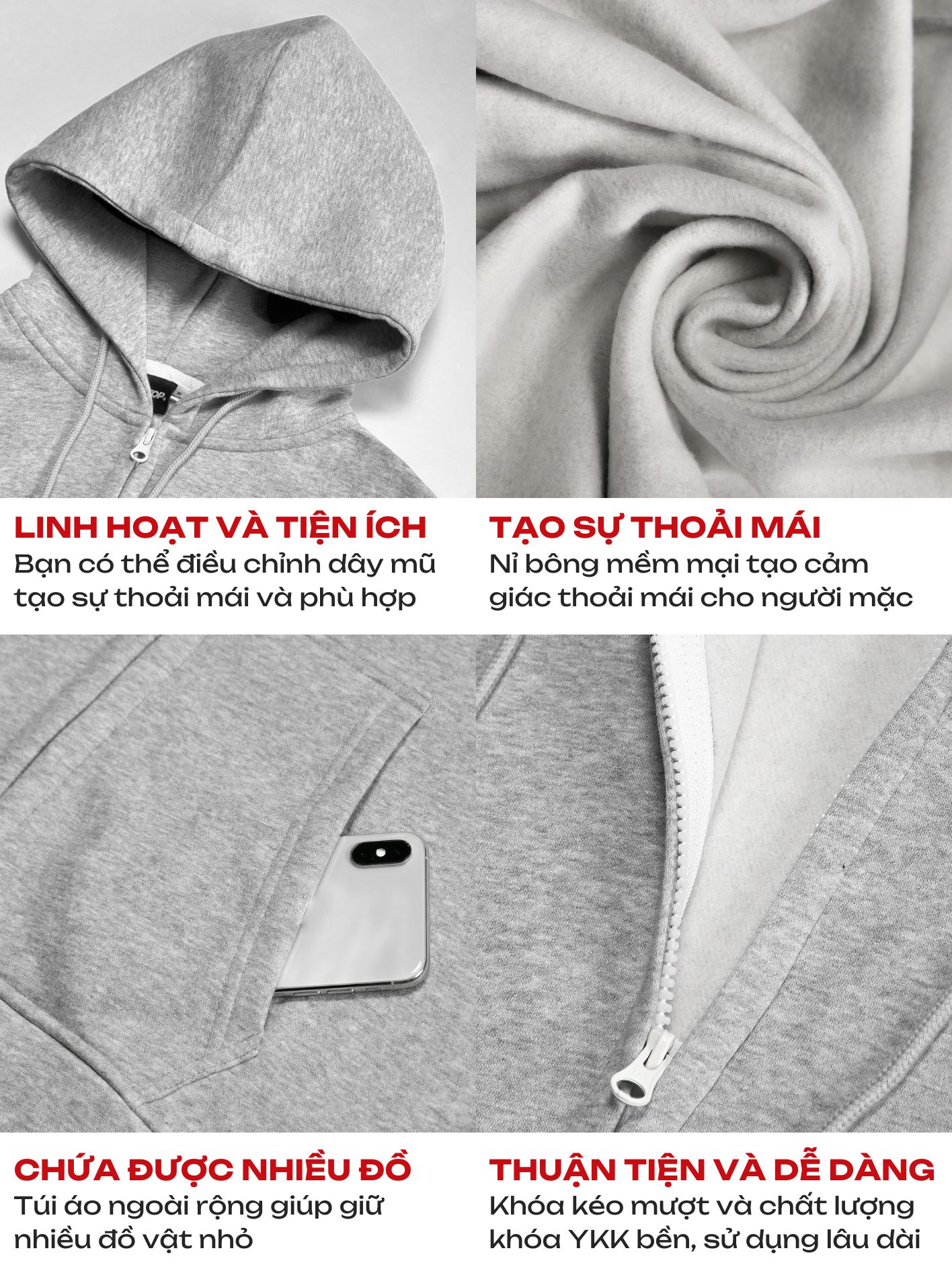 Với chất liệu nỉ bông dày dặn, thoáng mát Hoodie Zip local brand Basic của ONTOP có thể thấm hút mồ hôi tốt, giữu ấm cơ thể và là chất vải phù hợp với với mọi thời tiết. Form áo rộng rãi, chuẩn style Hàn Quốc " cân" tất mọi outfit và vóc dáng có đầy đủ size M, L, XL tha hồ cho bạn lựa chọn.