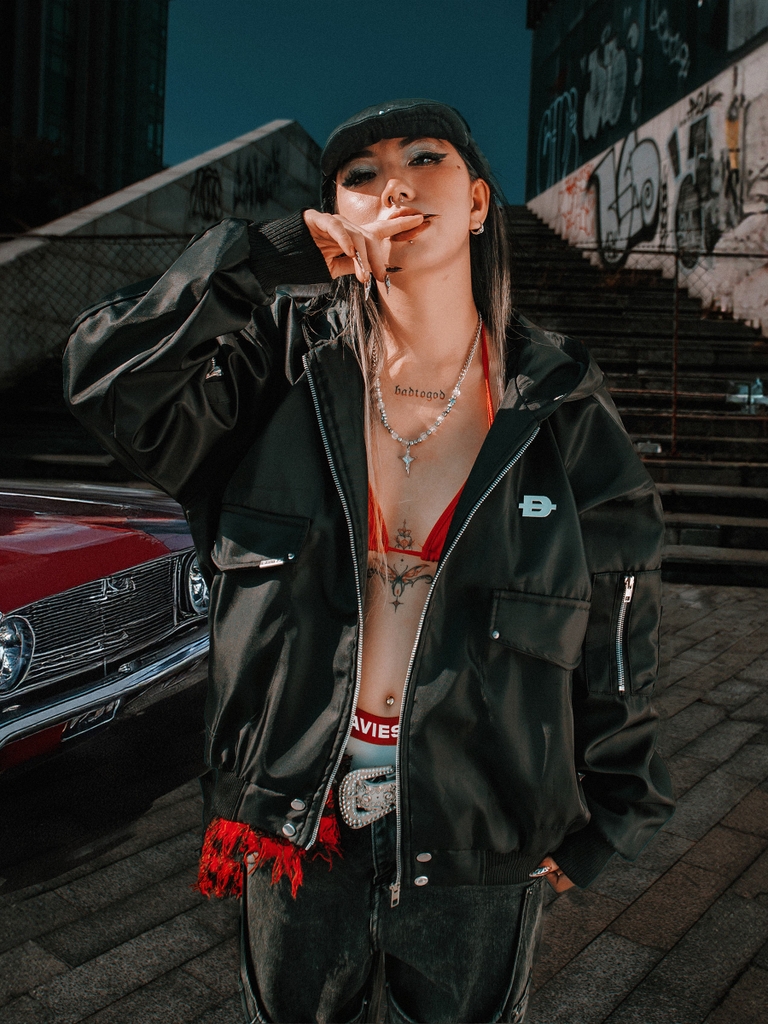 Sở hữu ngay chiếc bomber croptop da và dù từ Davies để làm mới phong cách streetwear của bạn!