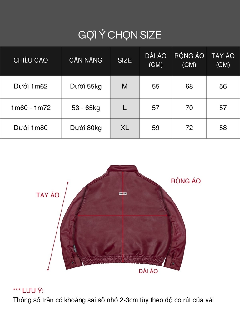 THÔNG TIN CHỌN SIZE (KÍCH CỠ) ÁO KHOÁC DA BOMBER CROPTOP LOCAL BRAND DAVIES: