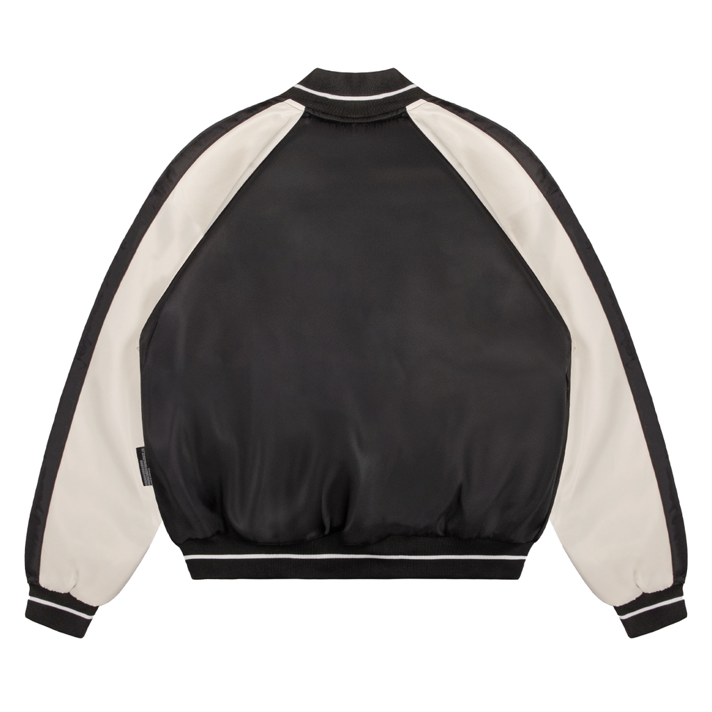 Sự phá cách nằm ở chi tiết tay áo phối màu kem – một sự tương phản tinh tế trên nền đen chủ đạo. Màu kem mang đến sự cân bằng, giảm bớt vẻ nặng nề của màu đen và làm nổi bật thiết kế bomber theo hướng trẻ trung, hiện đại hơn. Đây chính là chi tiết khiến chiếc áo trở nên khác biệt, giúp bạn nổi bật ngay cả khi xuất hiện giữa đám đông.