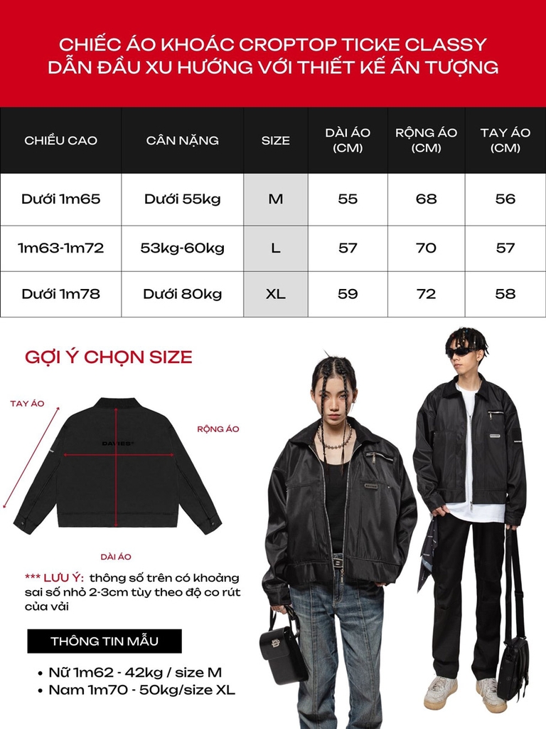Thông tin size ( kích cỡ ) áo khoác local brand đẹp Ticke Classy Jacket
