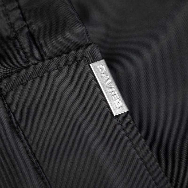 Dấu hiệu đặc trưng của áo khoác Davies với tag su thương hiệu độc đáo.