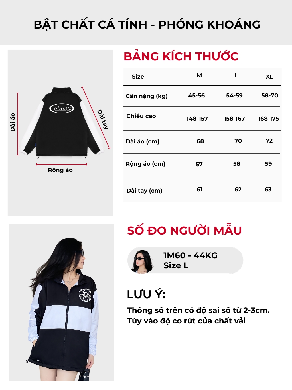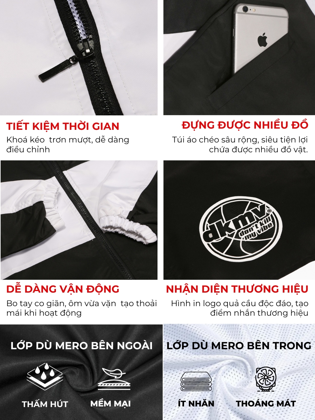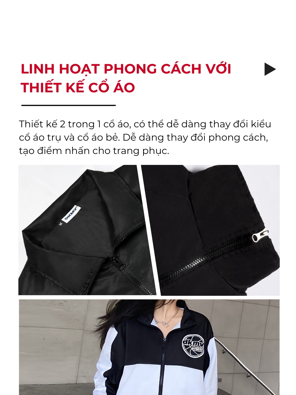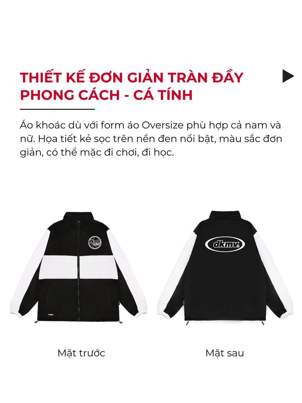 - Sản phẩm áo khoác dù 2 lớp nam nữ gây ấn tượng với phối màu đen phối trắng năng động, cá tính.