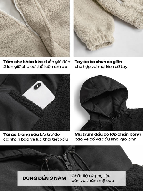 Áo khoác local brand đẹp Fleece Hooded Jacket lông cừu độc đáo, phong cách thời thượng