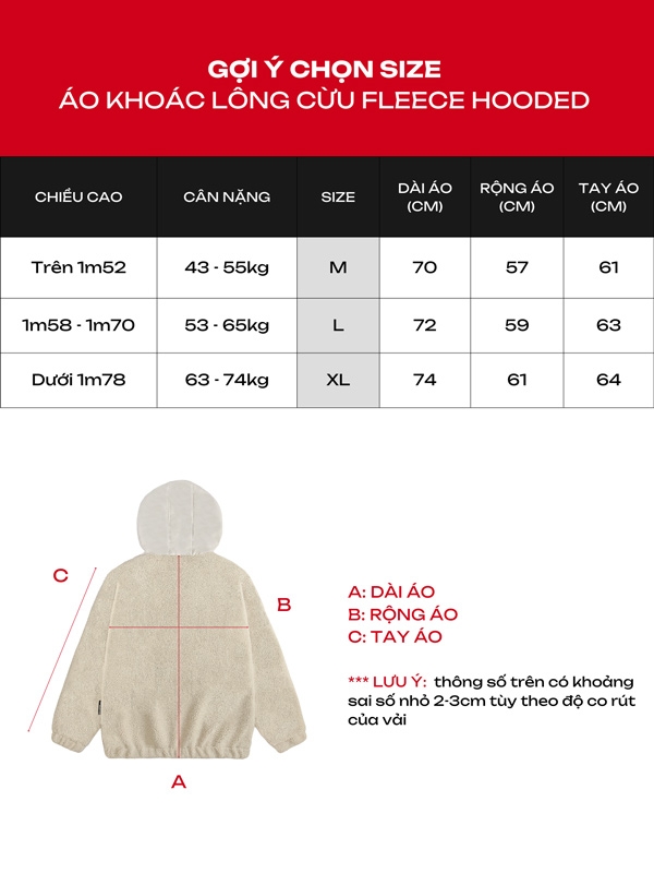 Thông tin size ( kích cỡ ) áo khoác local brand đẹp Fleece Hooded Jacket