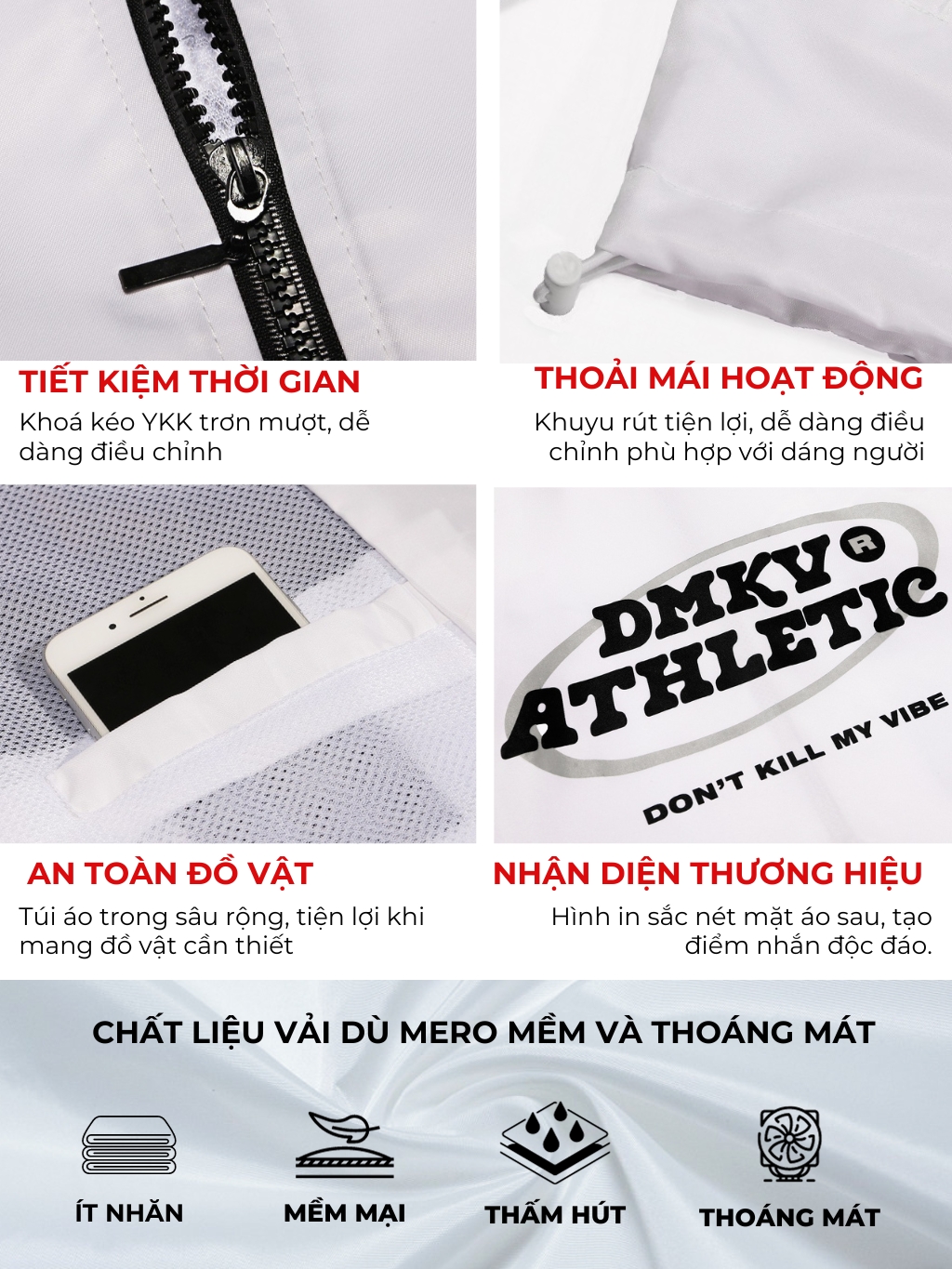 - Gồm 2 lớp: bên ngoài vải dù mero, bên trong lót lớp lưới thể thao thấm hút mồ hôi tốt.