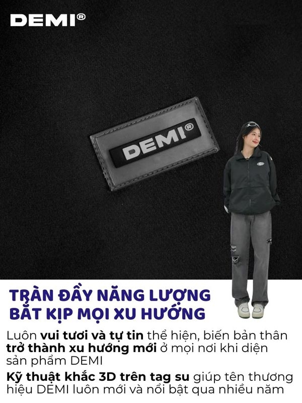 Thiết kế tag DEMI ở mặt sau áo tạo điểm nhấn dễ dàng nhận diện thương hiệu.