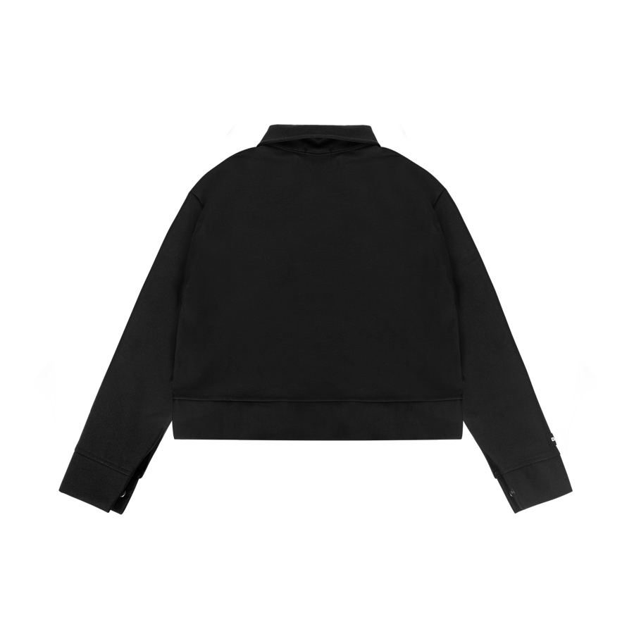 Áo khoác local brand nữ Leather Cropped Jacket được thiết kế theo phong cách tối giản bằng các nhãn thương hiệu. Điểm đáng chú ý là lần đầu tiên, Davies phát triển phụ liệu nhãn bạ chất liệu inox sang trọng thay thế hình in nhàm chán.