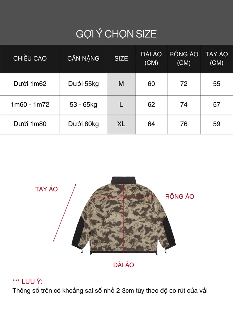 Fleece Zip-Up Jacket – Áo khoác lông cừu DAVIES bản camo phá cách