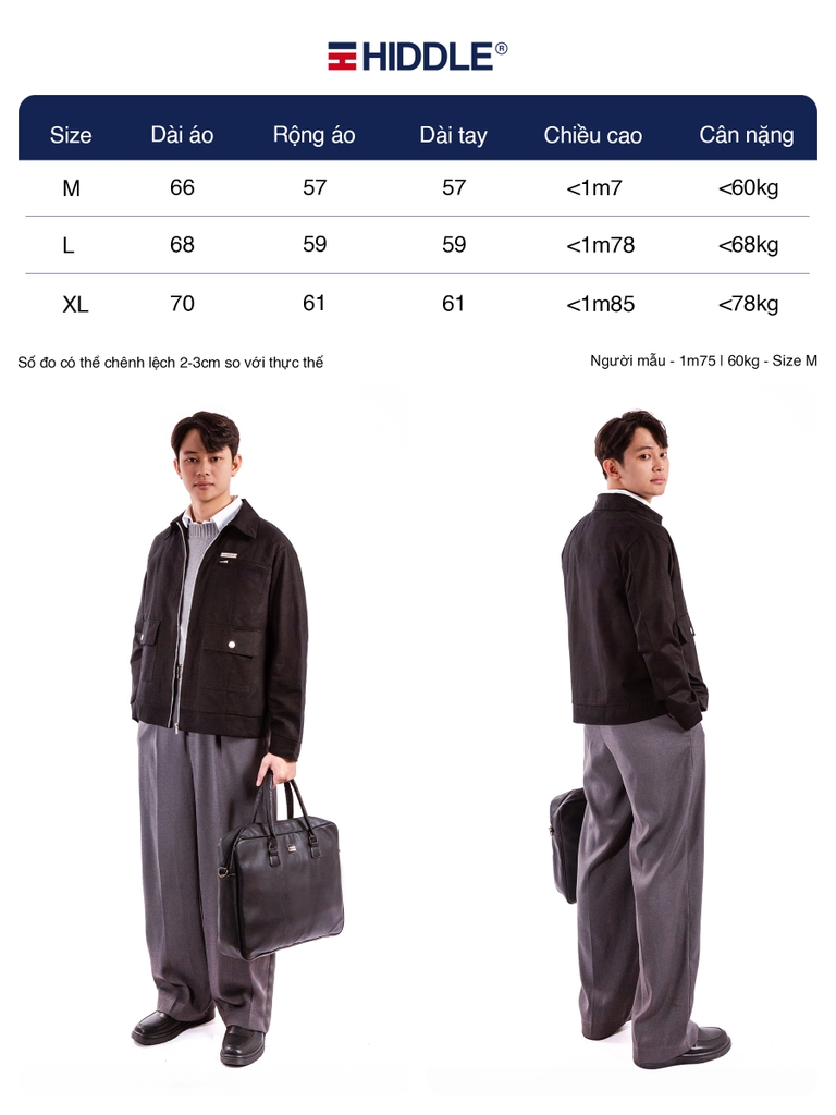 ⚠️ Lưu ý: Kích thước có thể chênh lệch từ 2–3cm. Liên hệ HIDDLE để được tư vấn chọn size phù hợp.