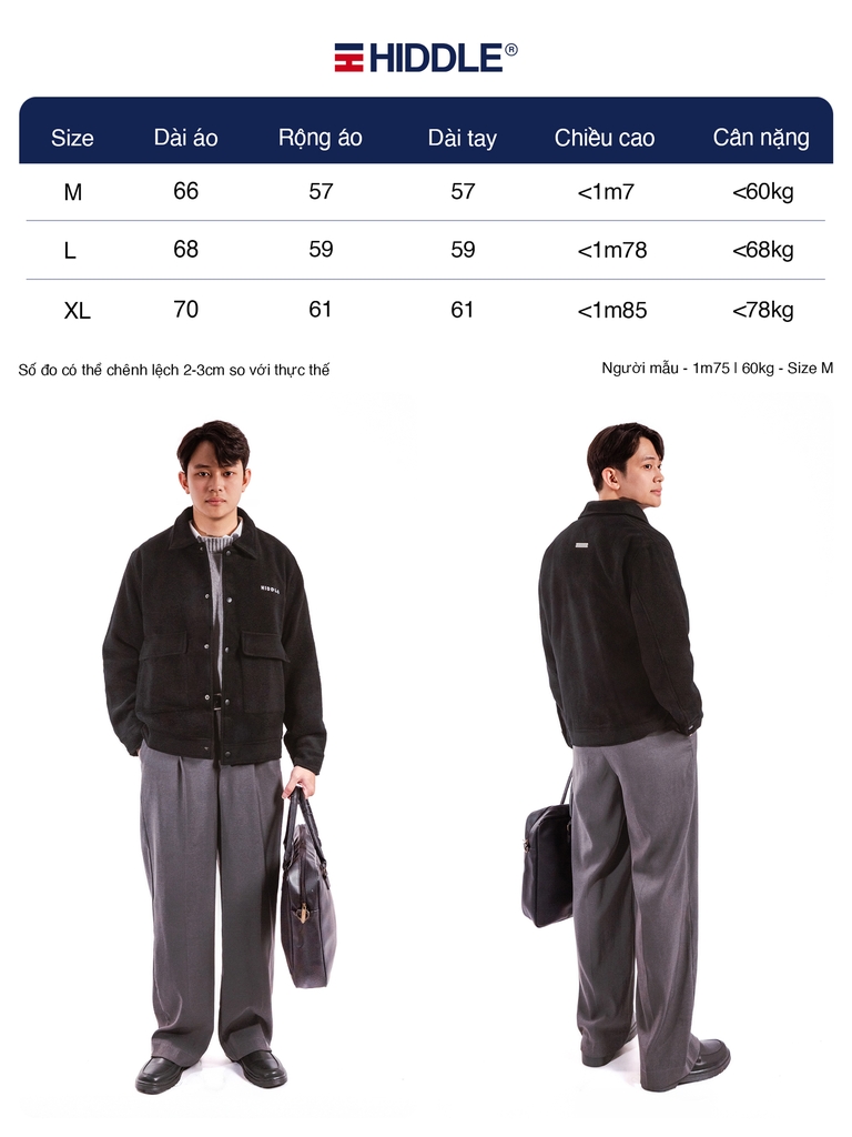 ⚠️ Sai số kích thước từ 2–3cm. Vui lòng inbox HIDDLE để được tư vấn chọn size phù hợp với chiều cao và cân nặng của bạn.