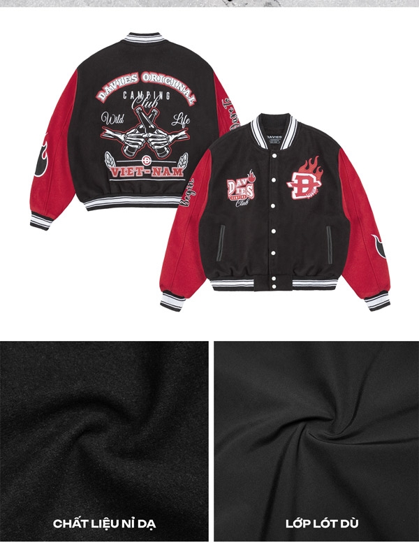 Davies là thương hiệu thời trang đường phố (streetwear) nổi tiếng với các thiết kế tiên phong. Lần này, Davies tiếp tục gây ấn tượng với việc ra mắt Áo khoác varsity nỉ local brand Davies - Camping Club Bomber Varsity Jacket, hứa hẹn mang đến trải nghiệm thời trang đột phá và trở thành mảnh ghép hoàn hảo cho phong cách đường phố của bạn.