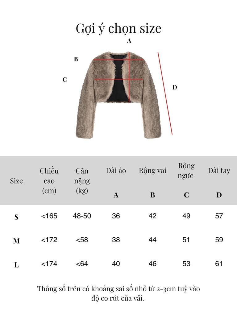 Áo khoác lông dài tay Peggy được sản xuất tại Việt Nam, tôn vinh vẻ đẹp của người phụ nữ.