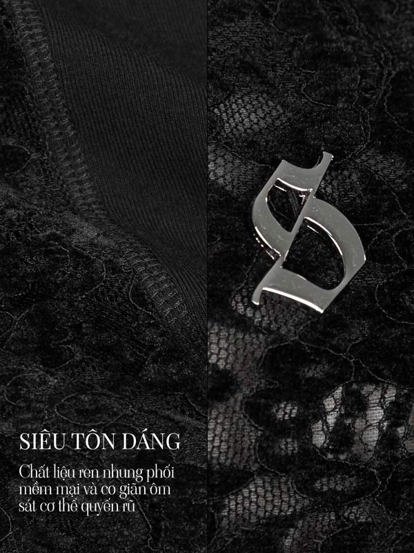 Chất liệu ren phối nhung mềm mại và co giãn, ôm sát lấy cơ thể, người mang thoải mái vận động mà chẳng cần lo ngại.