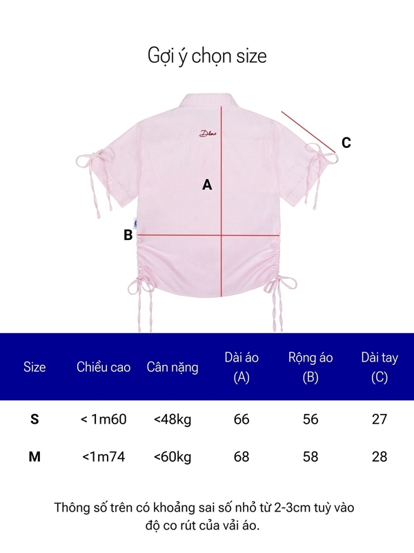 | Size | Dài áo | Rộng áo | Dài tay | Rộng ống tay |
