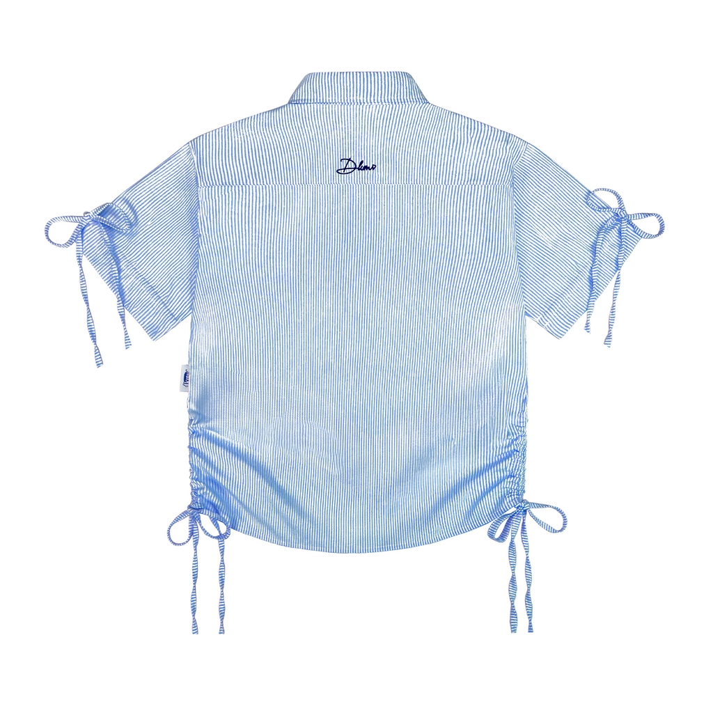 Oxford Shirt with Ribbon được thiết kế với kiểu dáng form rộng tay ngắn khiến các bé trở nên đáng yêu với chi tiết kẻ sọc.
