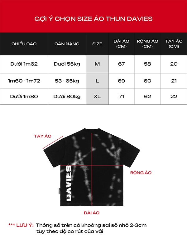 Thể hiện cá tính riêng biệt và bắt kịp xu hướng thời trang đường phố, Davies mang đến bạn mẫu áo thun form rộng với kiểu dáng thoải mái cùng 3 size tiêu chuẩn, phù hợp với mọi vóc dáng.