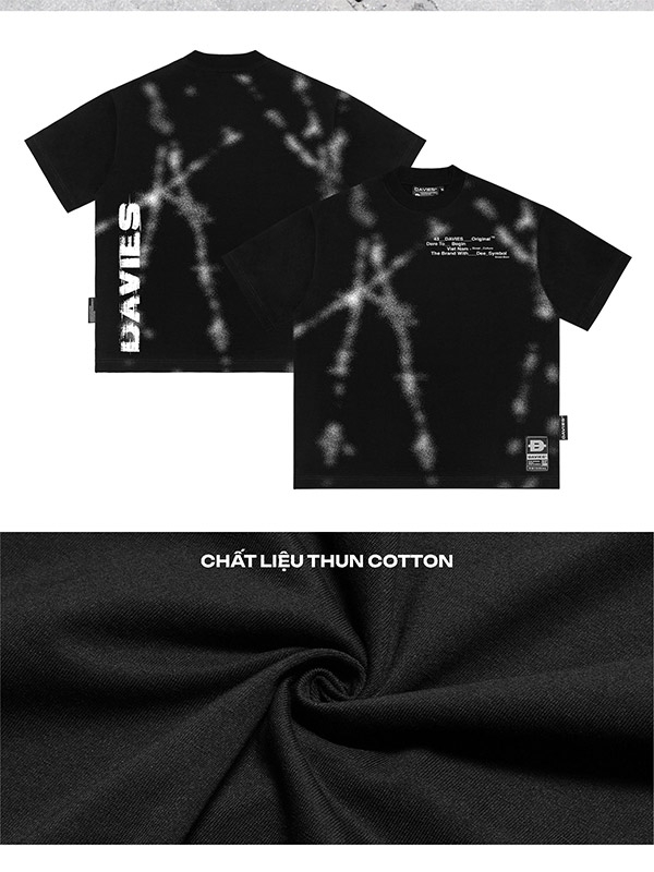 Áo thun đen in hình tràn viền DAVIES là một điểm nhấn ấn tượng, cá tính mạnh mẽ và phá cách của người sở hữu. Đồng thời, thể hiện tinh thần hiphop, đường phố của bạn và tạo dựng phong cách thời trang đường phố đậm chất cá nhân.