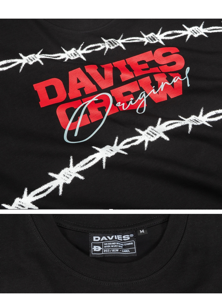 Thép gai không chỉ là họa tiết – mà còn là biểu tượng của tinh thần không khuất phục. Chiếc áo thun form rộng in chữ DAVIES này mang đậm vibe hip-hop và đường phố, với thiết kế full graphic mạnh mẽ, tạo nên dấu ấn cực cháy ngay từ cái nhìn đầu tiên:
