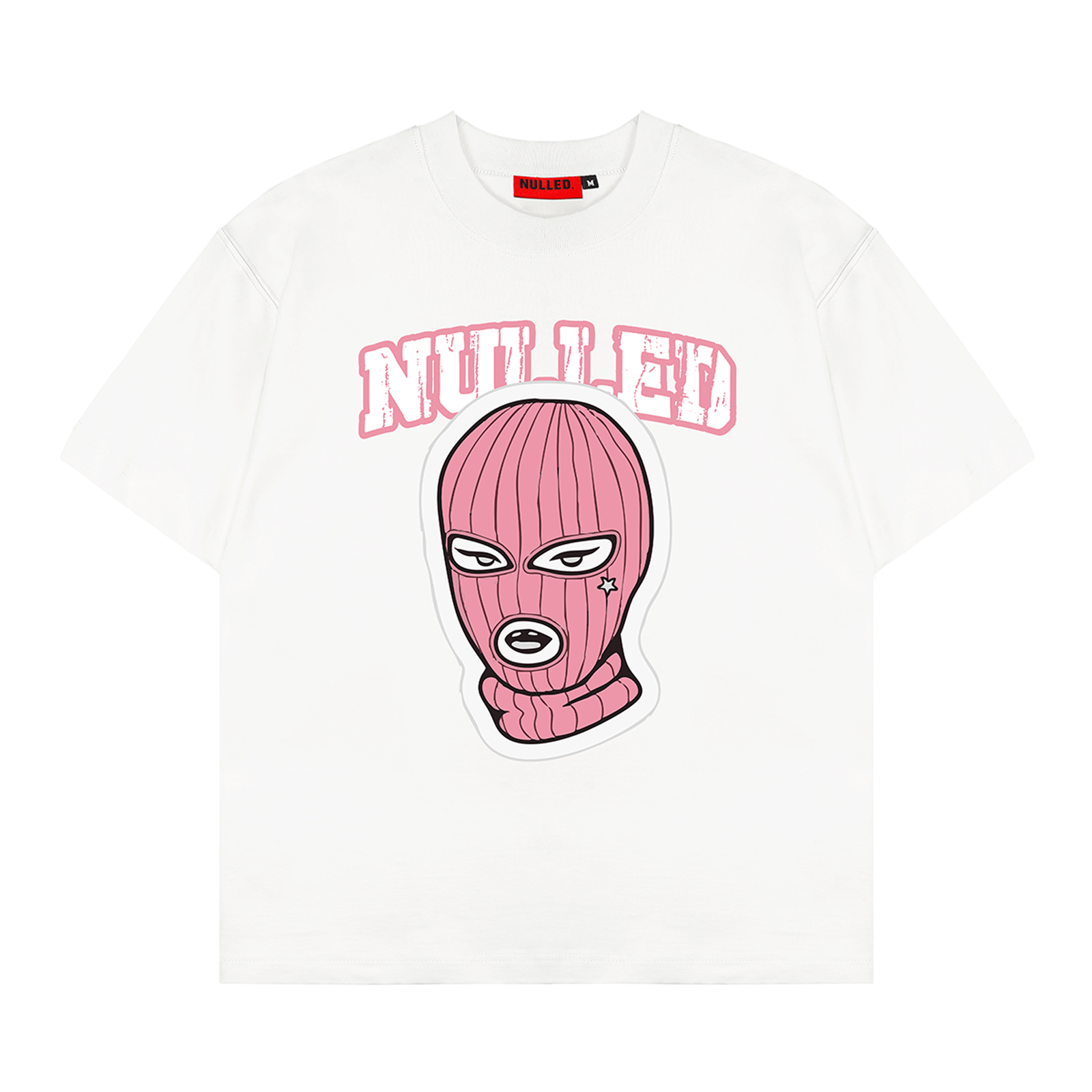 Thiết kế: Điểm nhấn nổi bật là hình in mặt nạ balaclava màu hồng theo phong cách chibi – ngộ nghĩnh nhưng vẫn mang lại cảm giác bí ẩn, khác biệt. Đây chính là chi tiết tạo nên sự độc đáo cho chiếc áo thun này.