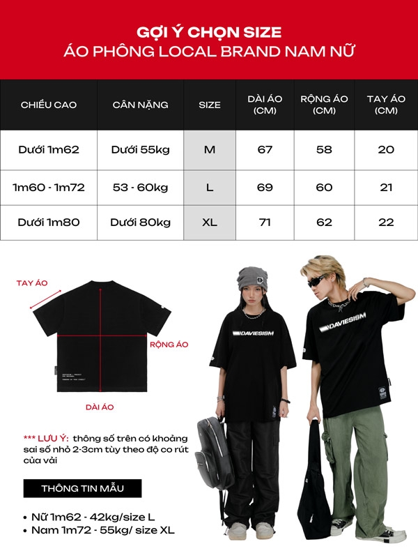 Thông tin chọn size ( kích cỡ ) áo thun local brand Davies