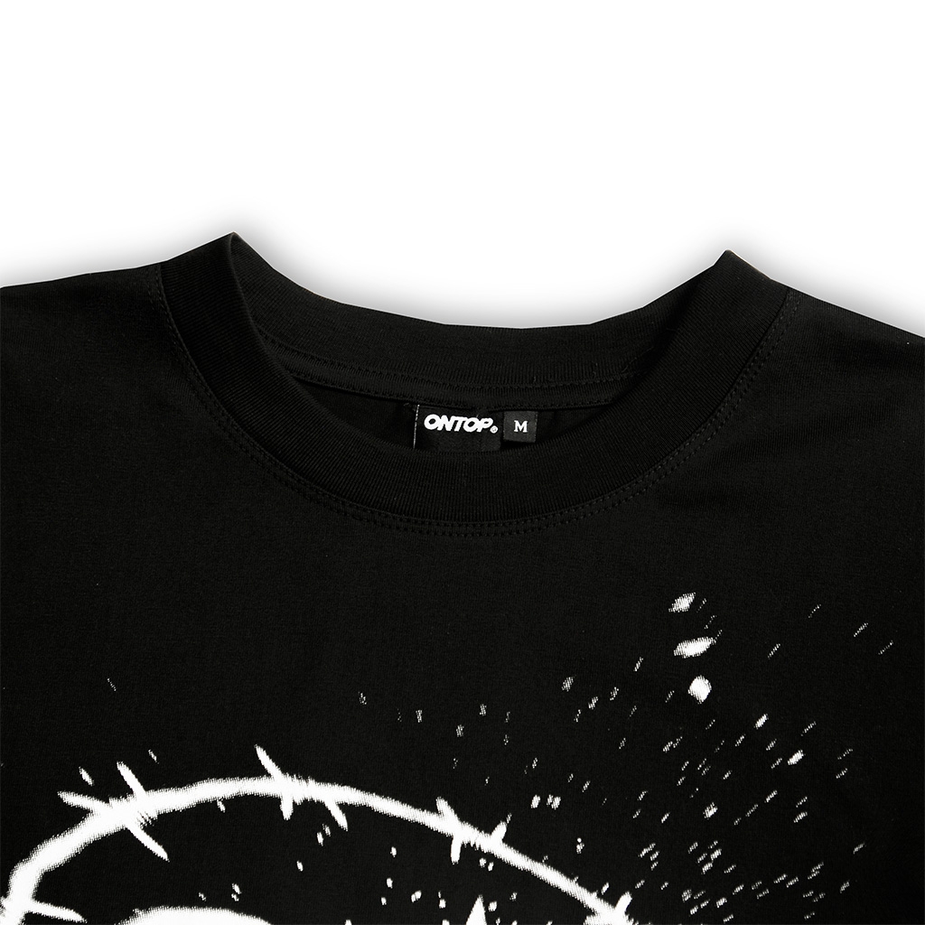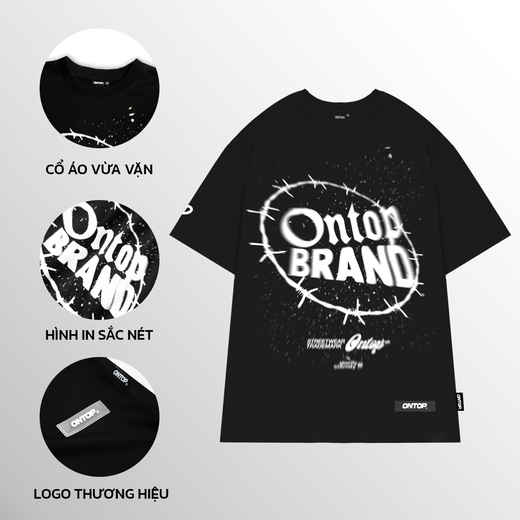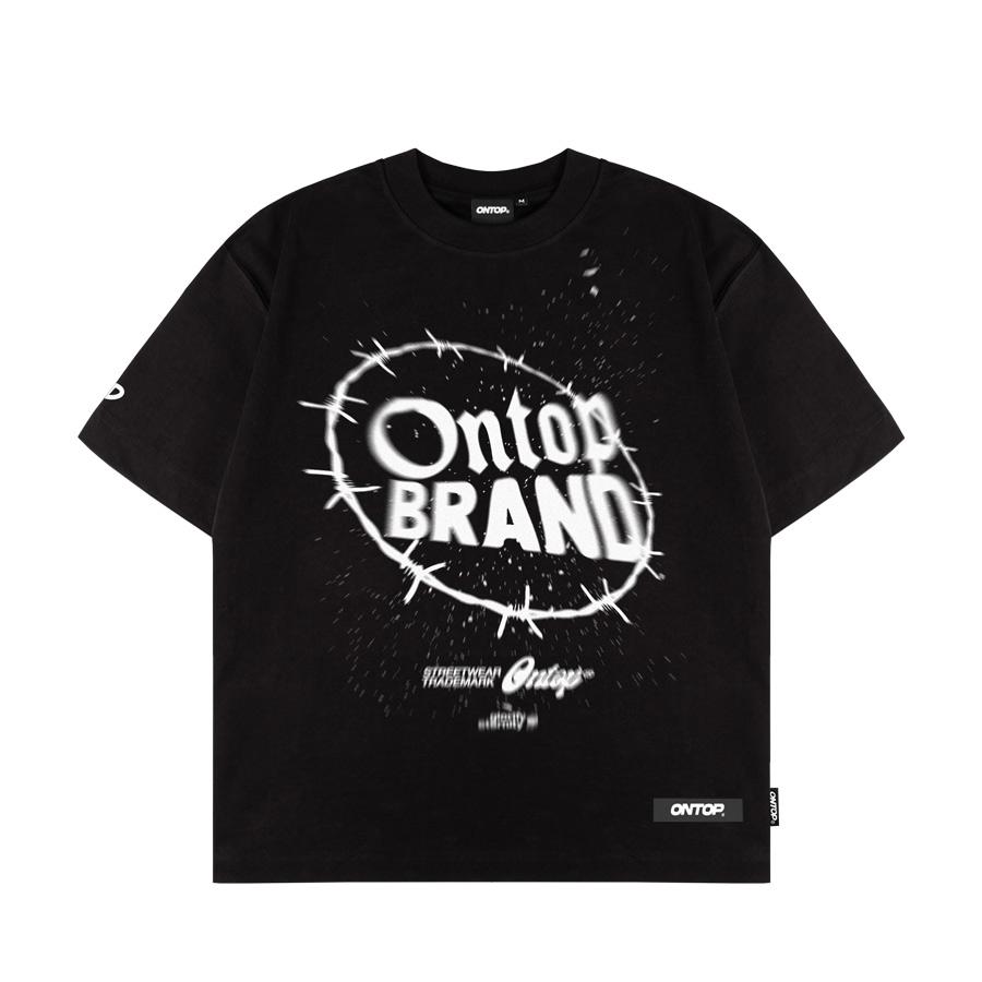 Cầm trên tay mẫu local brand áo thun Tee Trame, thứ đập vào mắt ta đầu tiên chính là hình in chữ ONTOP BRAND cách điệu cùng với vòng tròn gai góc bên ngoài. Đây là mẫu hình in độc lạ đúng với tinh thần táo bạo, dám thử dám trải nghiệm mà ONTOP theo đuổi.