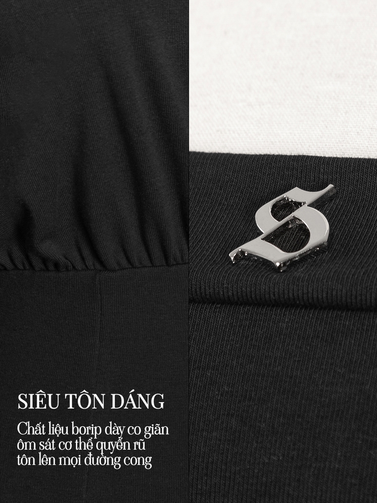 Áo có form croptop trễ vai dài tay được thiết kế ôm body tuyệt đối, nhấn nhá chi tiết nhún eo, giúp định hình đường cong cơ thể, tôn vinh vòng eo thon gọn và bờ vai quyến rũ.