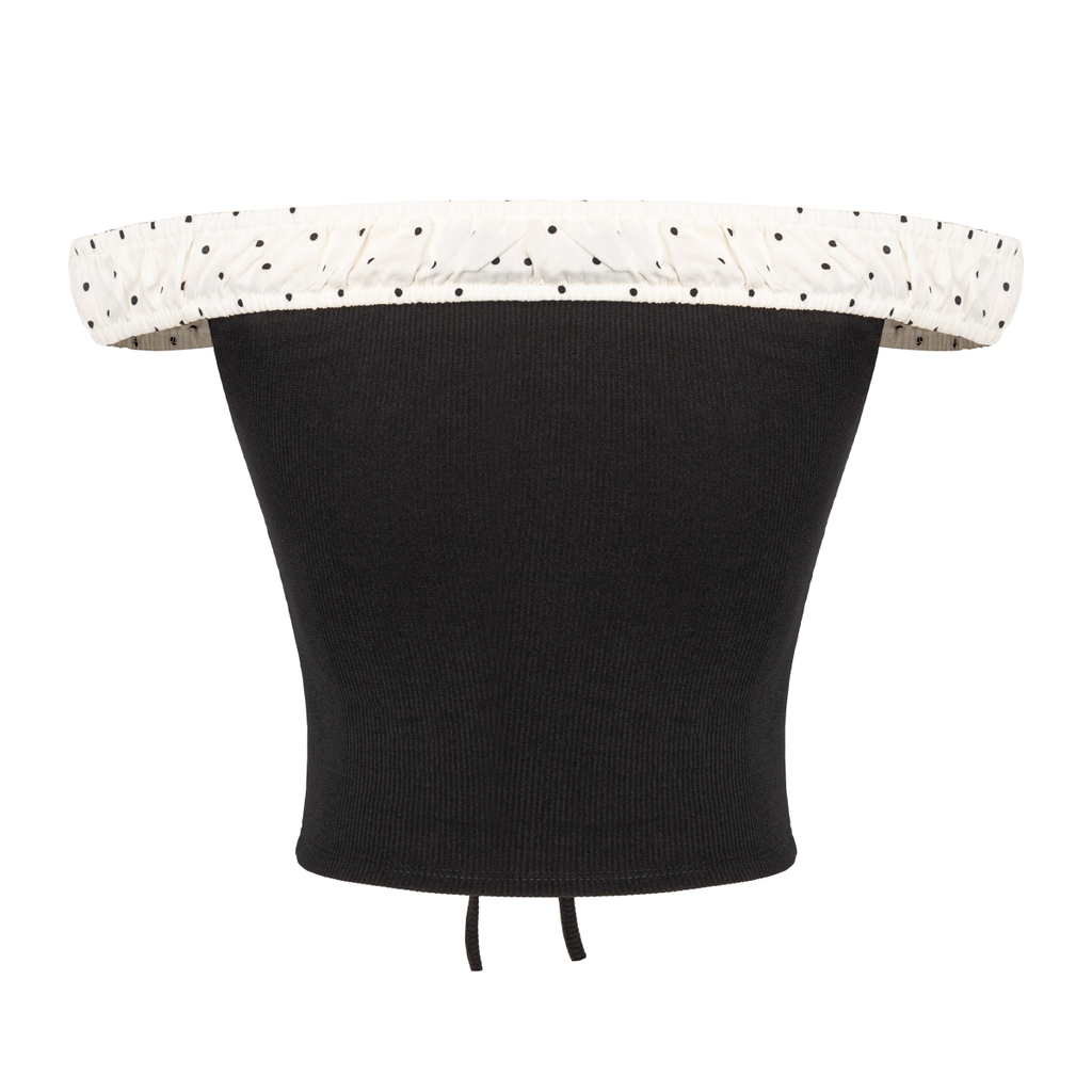 Khoác lên mình gam màu đen huyền bí phối chun vai màu kem, Jethro Top không chỉ dễ dàng kết hợp với nhiều loại trang phục khác mà còn làm nổi bật vẻ sang trọng nhưng vẫn giữ trọn nét ngây thơ, đáng yêu của bé.