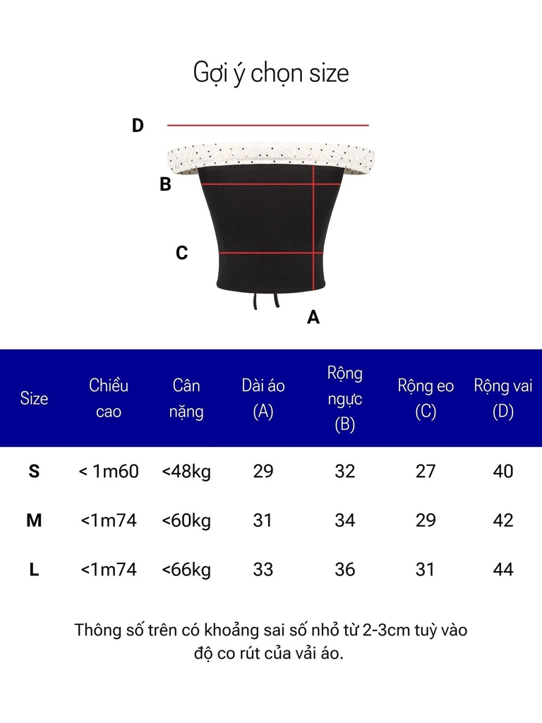 | Size | Dài áo | Rộng ngực | Rộng eo | Rộng vai |