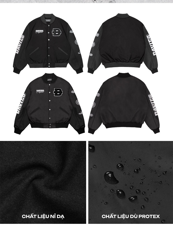 Với chất liệu nỉ dạ, áo varsity davies không chỉ mang đến cảm giác ấm áp và thoáng mát, giúp áo giữ được form chuẩn trong suốt thời gian sử dụng.