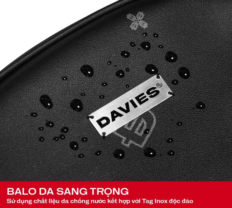 Balo da local brand Davies sử dụng chất liệu da sang trọng. Độ dày dặn của chất liệu mang đến form balo đứng đẹp