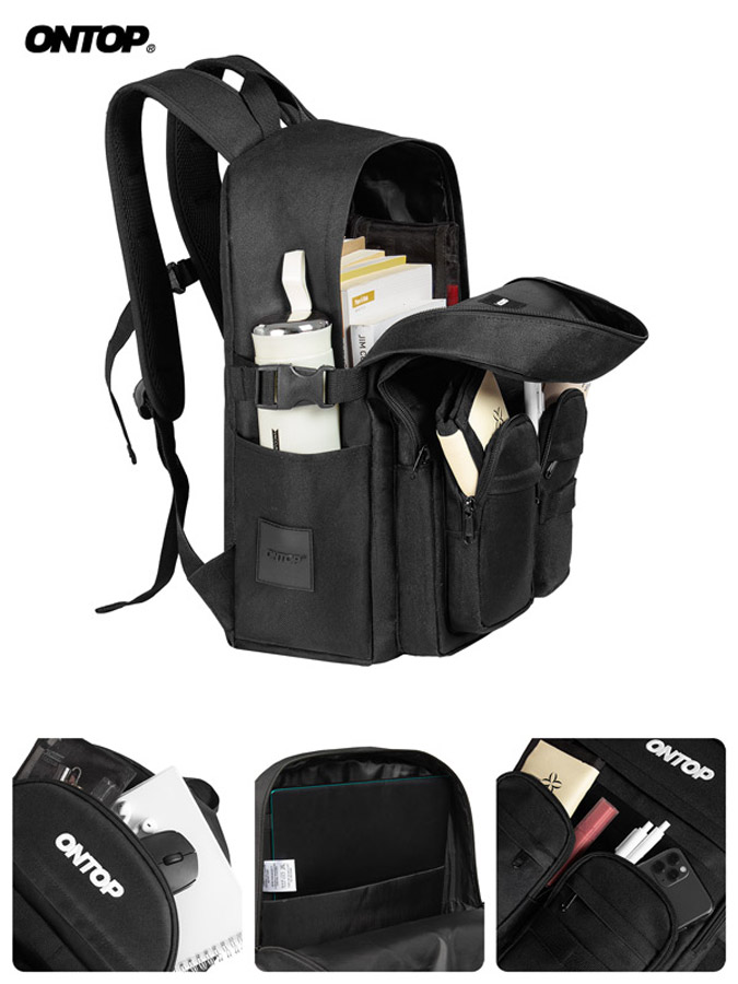 Balo đi học nam nữ ONTOP có form đứng và rộng rãi đựng được laptop đến 15 inches và gồm nhiều ngăn giúp người dùng sắp xếp đồ đạc một cách khoa học và dễ dàng trong việc tìm kiếm khi cần