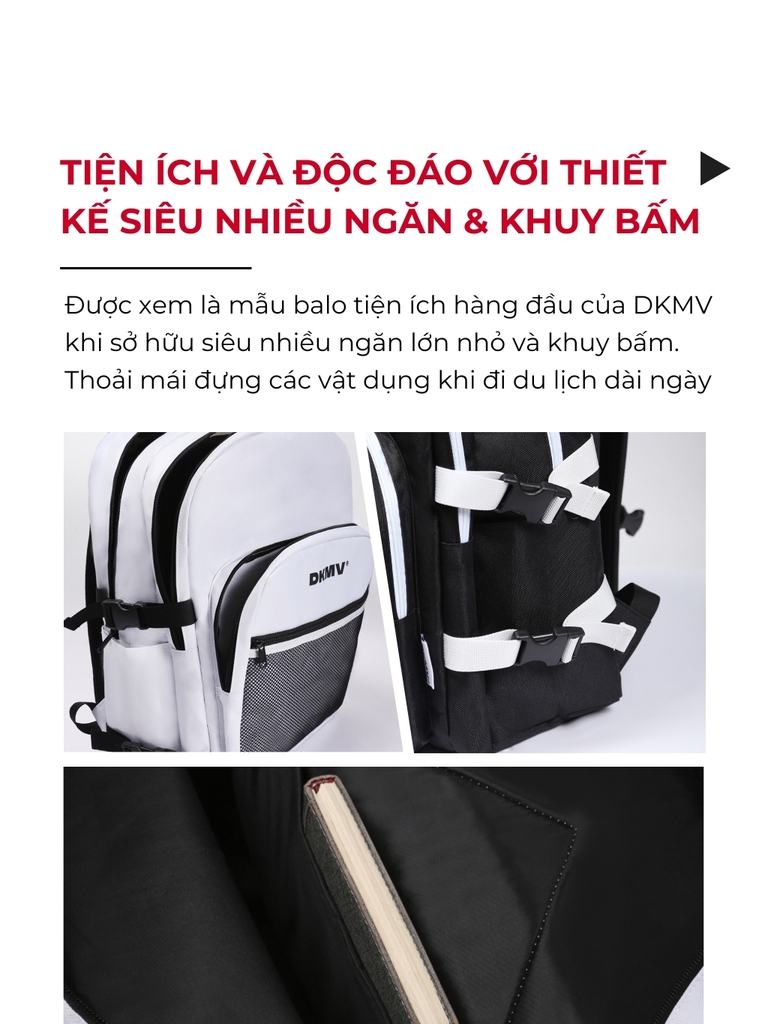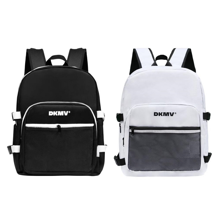 - Chi tiết Logo DKMV được in sắc nét ở mặt trước balo đi học canvas màu đen.
