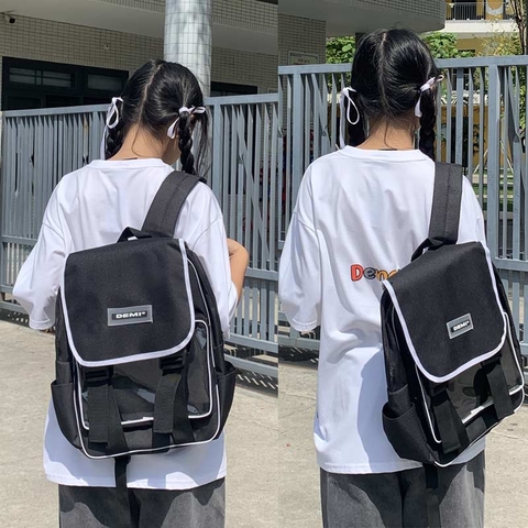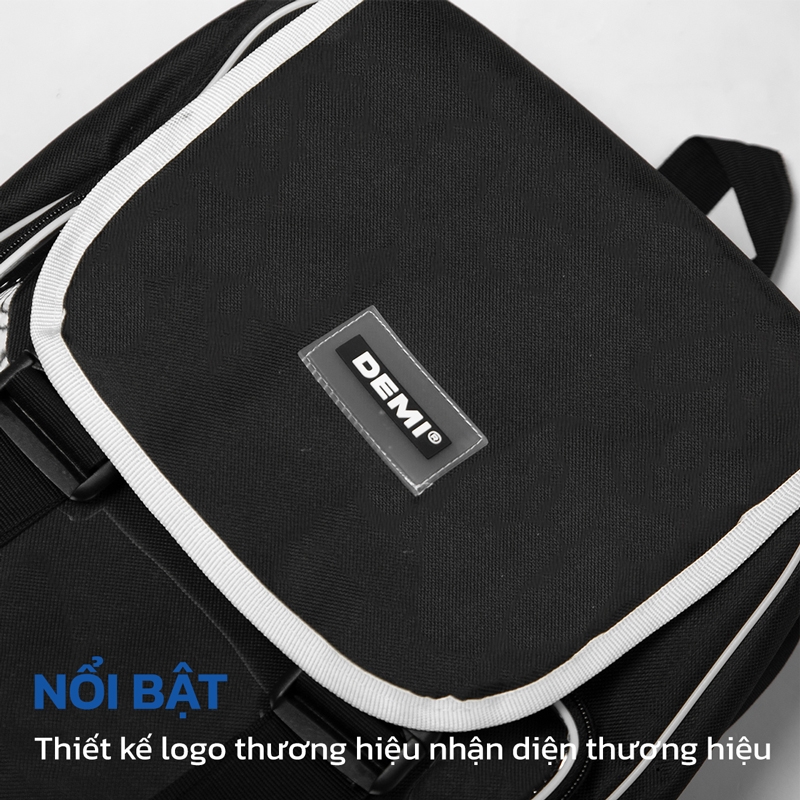 Mặt trước balo có thiết kế một tag su thương hiệu DEMI khá tinh tế và nổi bật, tạo điểm nhấn giúp chiếc balo của các bạn thêm thu hút.