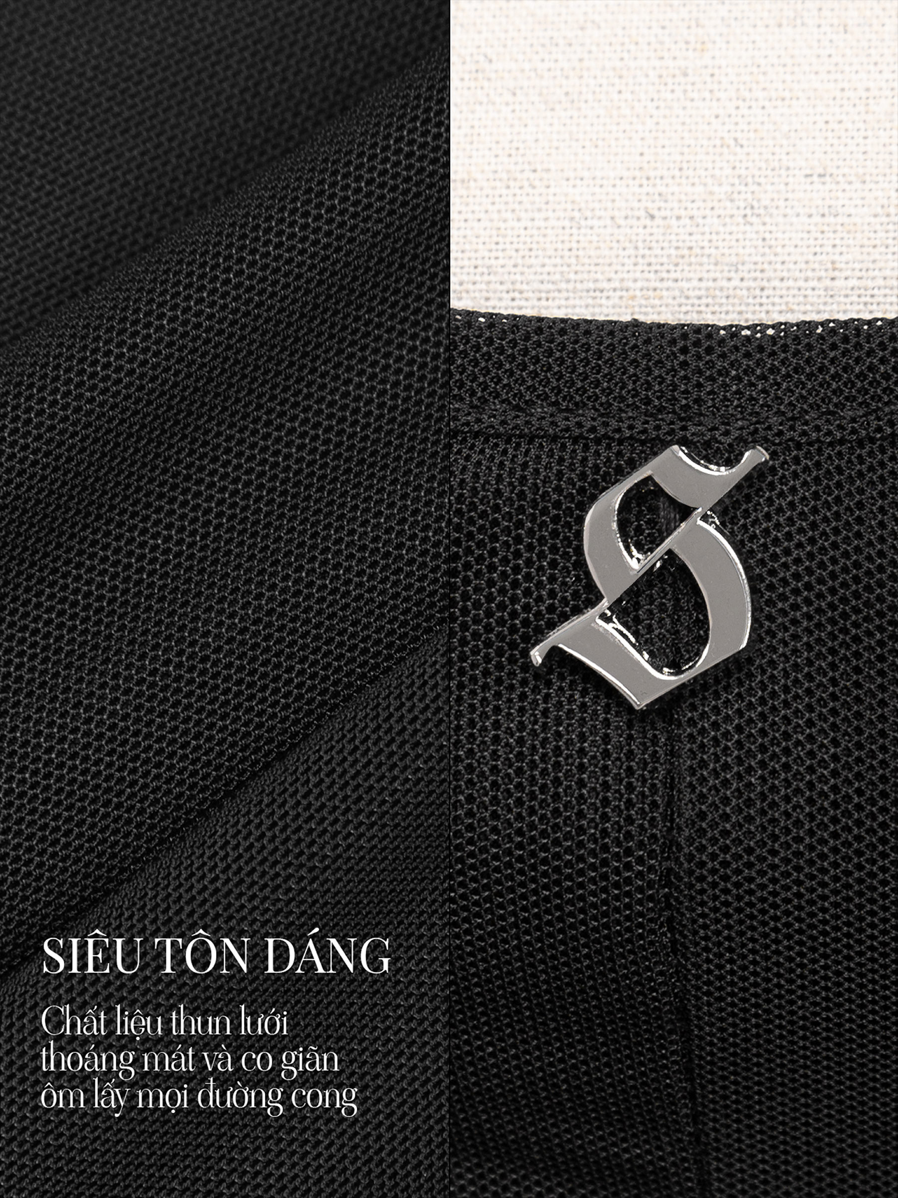 Chất liệu thun cotton co giãn linh hoạt phối lưới mềm mại, ôm trọn đường cong nhưng vẫn mang lại cảm giác thoải mái tuyệt đối.