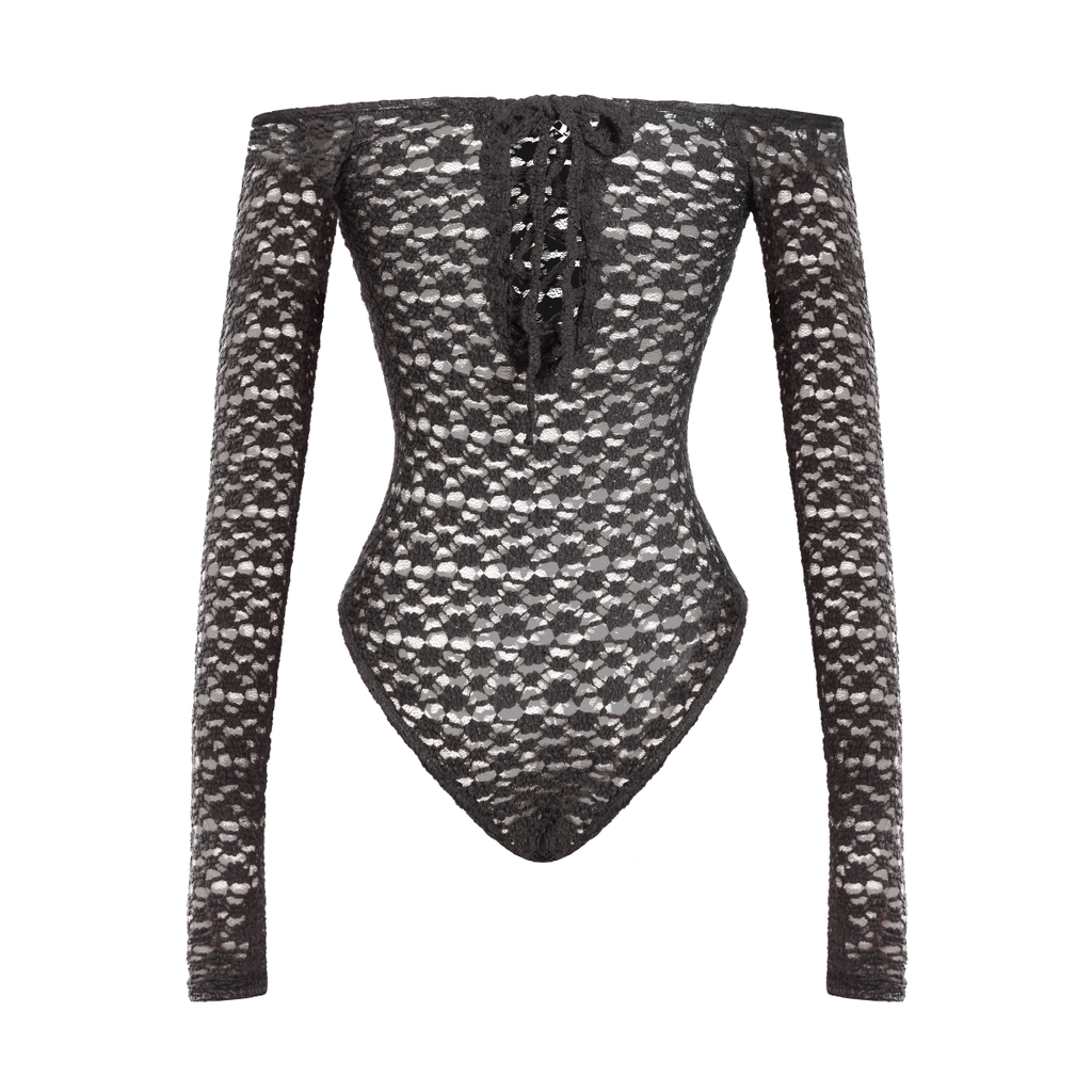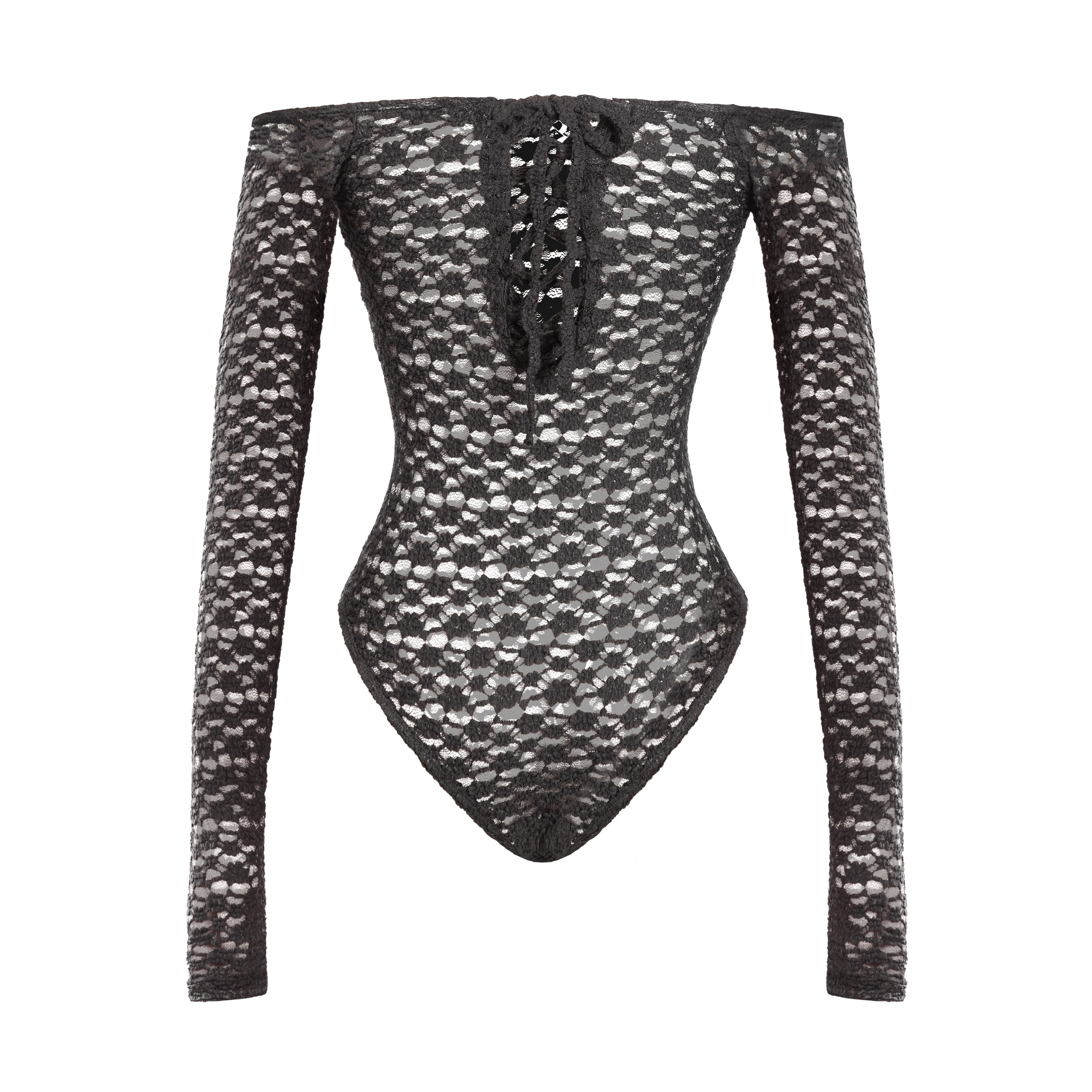 Bodysuit ren hoa nhí trễ vai Daisy được sản xuất tại Việt Nam, tôn vinh vẻ đẹp của người phụ nữ.