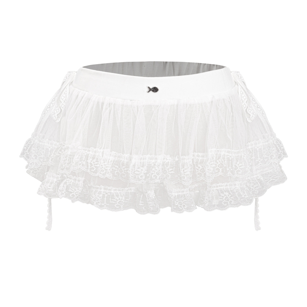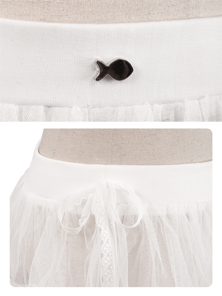 Tulle Ballet Skirt được tạo nên từ những lớp vải thun lưới xuyên thấu mềm mại, được xếp tầng khéo léo, tạo nên độ bồng bềnh và thướt tha đầy ấn tượng, kết hợp cùng lớp viền ren mềm mại được phối tinh xảo càng làm tăng thêm nét điệu đà.