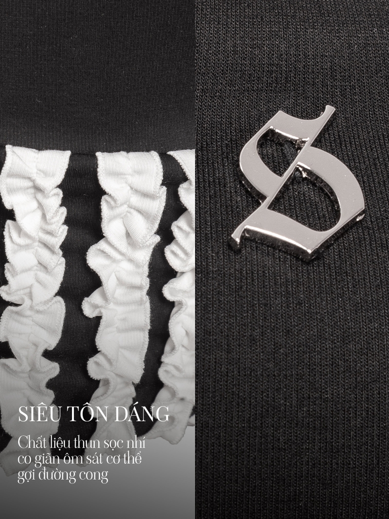 Chất liệu thun 2 da ôm sát giúp định hình phom dáng cơ thể, làm nổi bật từng đường cong mềm mại một cách đầy chủ đích.