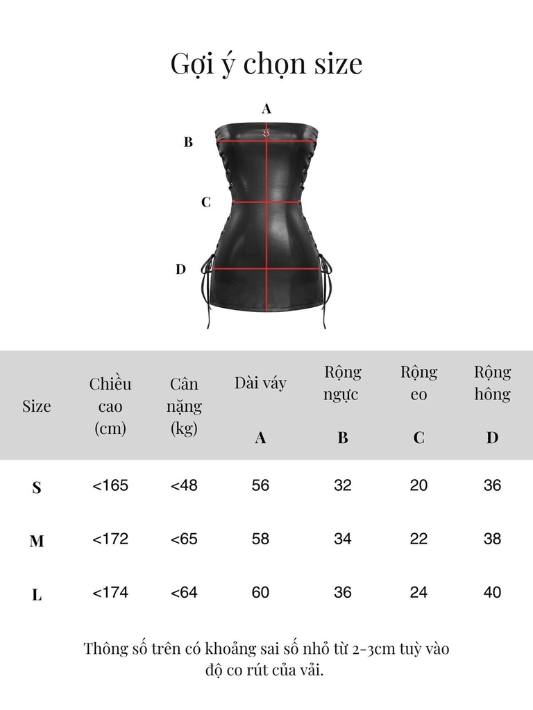 Size Rộng eo Rộng ngực Rộng hông Chiều dài