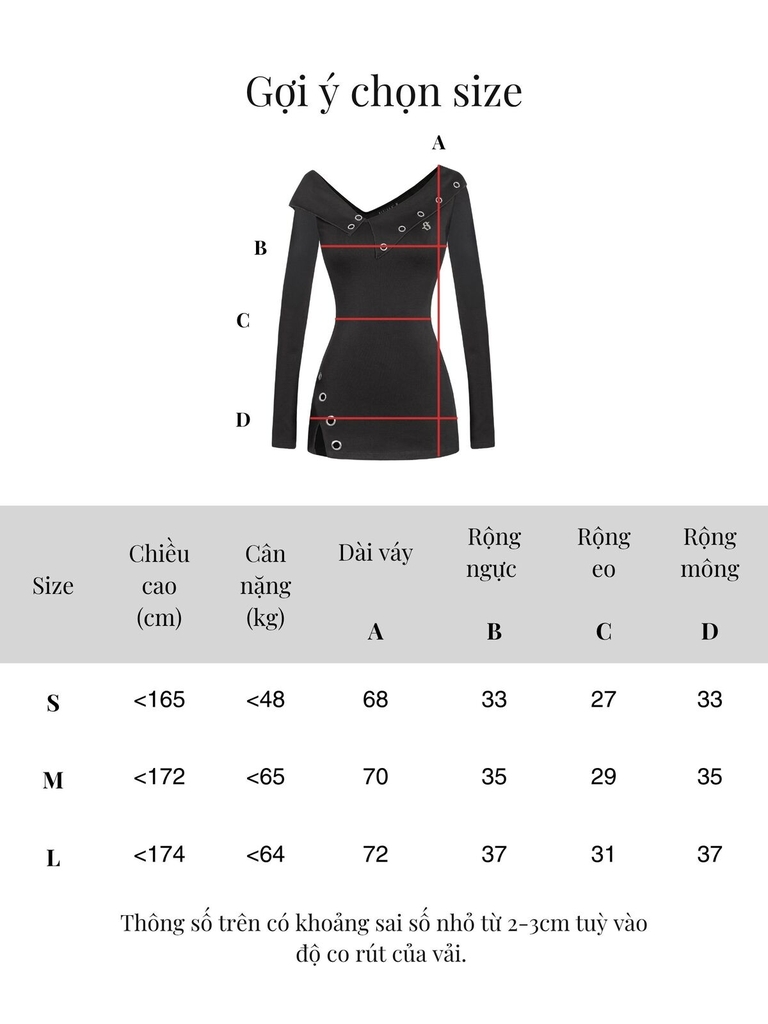 | Size | Rộng eo | Rộng ngực | Rộng mông | Chiều dài |