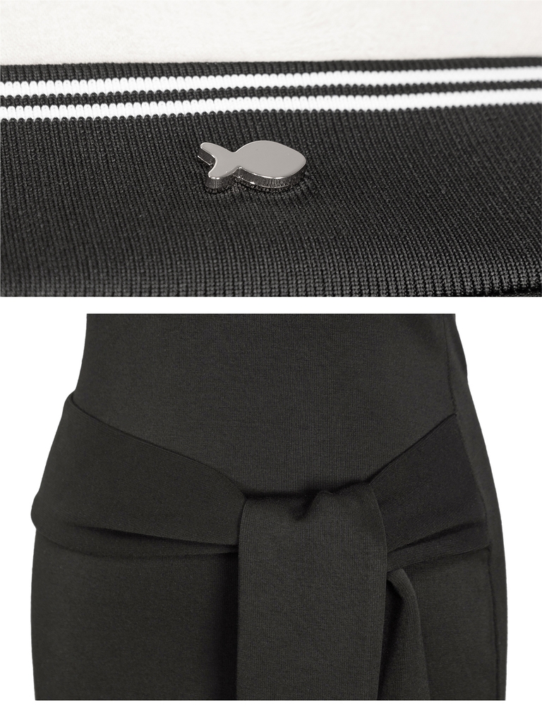 Sự điệu đà được dệt nên từ dáng đuôi cá ngắn với phần lai xếp tầng bồng bềnh, tạo chuyển động thướt tha đầy duyên dáng. Chi tiết dây thắt eo mảnh mai, giúp bé dễ dàng tạo điểm nhấn ngọt ngào cho vòng eo. Cuối cùng, chiếc logo cá nhỏ xinh được đính khéo léo, hoàn thiện dấu ấn thương hiệu.
