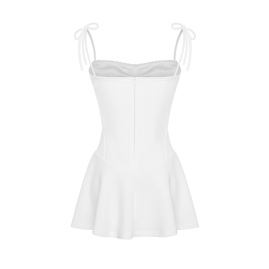 Phần thân corset điệu đà kết hợp cùng chi tiết nhún ngực phối ren tỉ mỉ, tạo nên một tổng thể đáng yêu khó cưỡng. Dáng váy xòe nhẹ nhàng theo từng bước chân, mang lại cảm giác thướt tha và nữ tính.